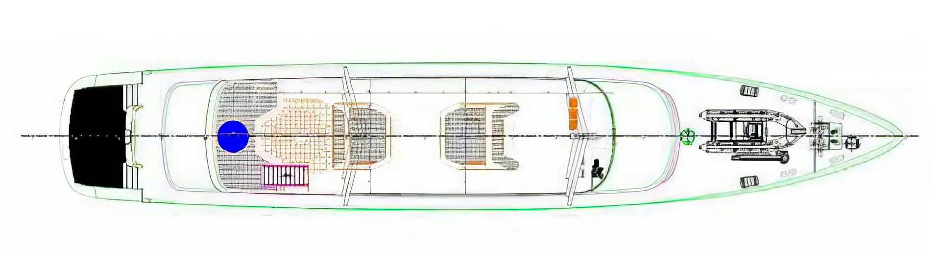 CLASE AZUL has a rich selection of water toys, including jet skis, sea bobs, SUPs, and kayaks. The main deck provides a shaded lounge area ideal for dining and relaxation, while the interior boasts a beautiful saloon and a decorative dining area. On the spacious sundeck, guests can unwind in the jacuzzi, enjoy a fire corner, watch movies on the projector, and relish the fully stocked bar, all ensuring a 5-star service experience.