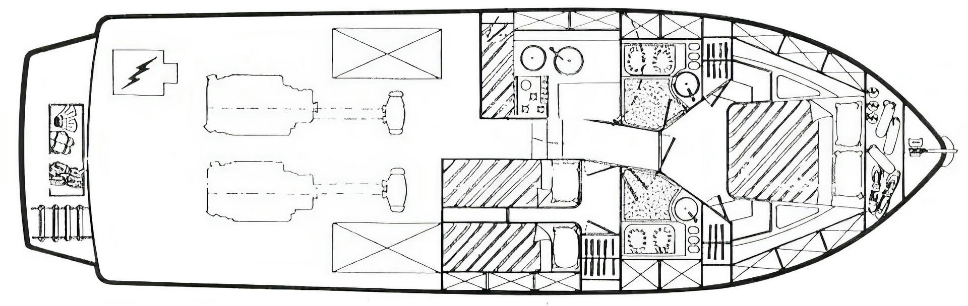 The flybridge and deck area provides an idyllic setting for outdoor enjoyment, whether it's a one-day excursion or an overnight charter. Bask in the splendor of your surroundings as you sail through the clear waters, embracing the true essence of luxury.