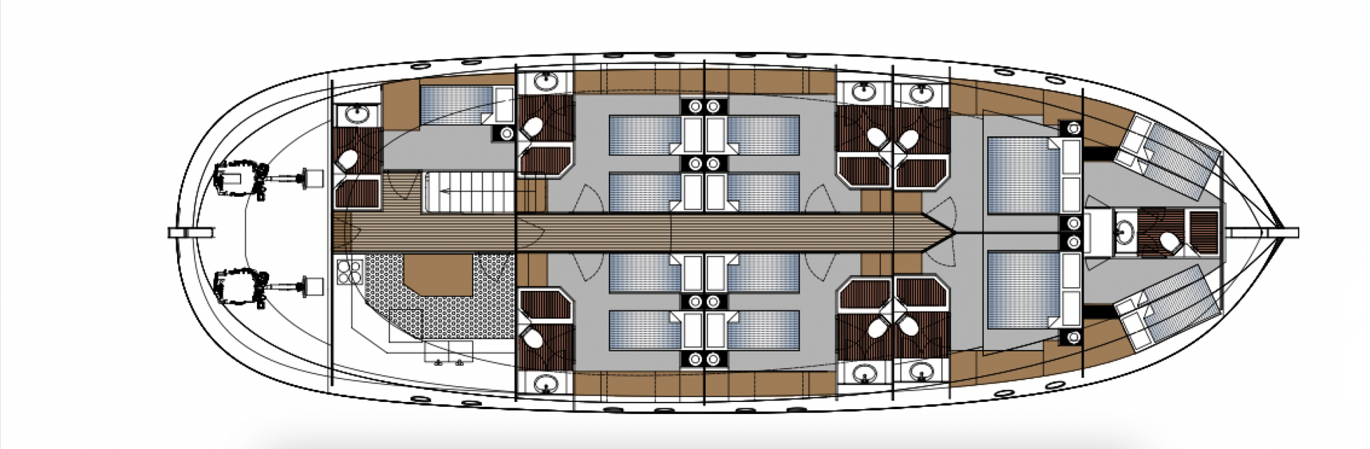 Our guests will like the large sun deck, perfect for sunbathing during sailing or swim stops.