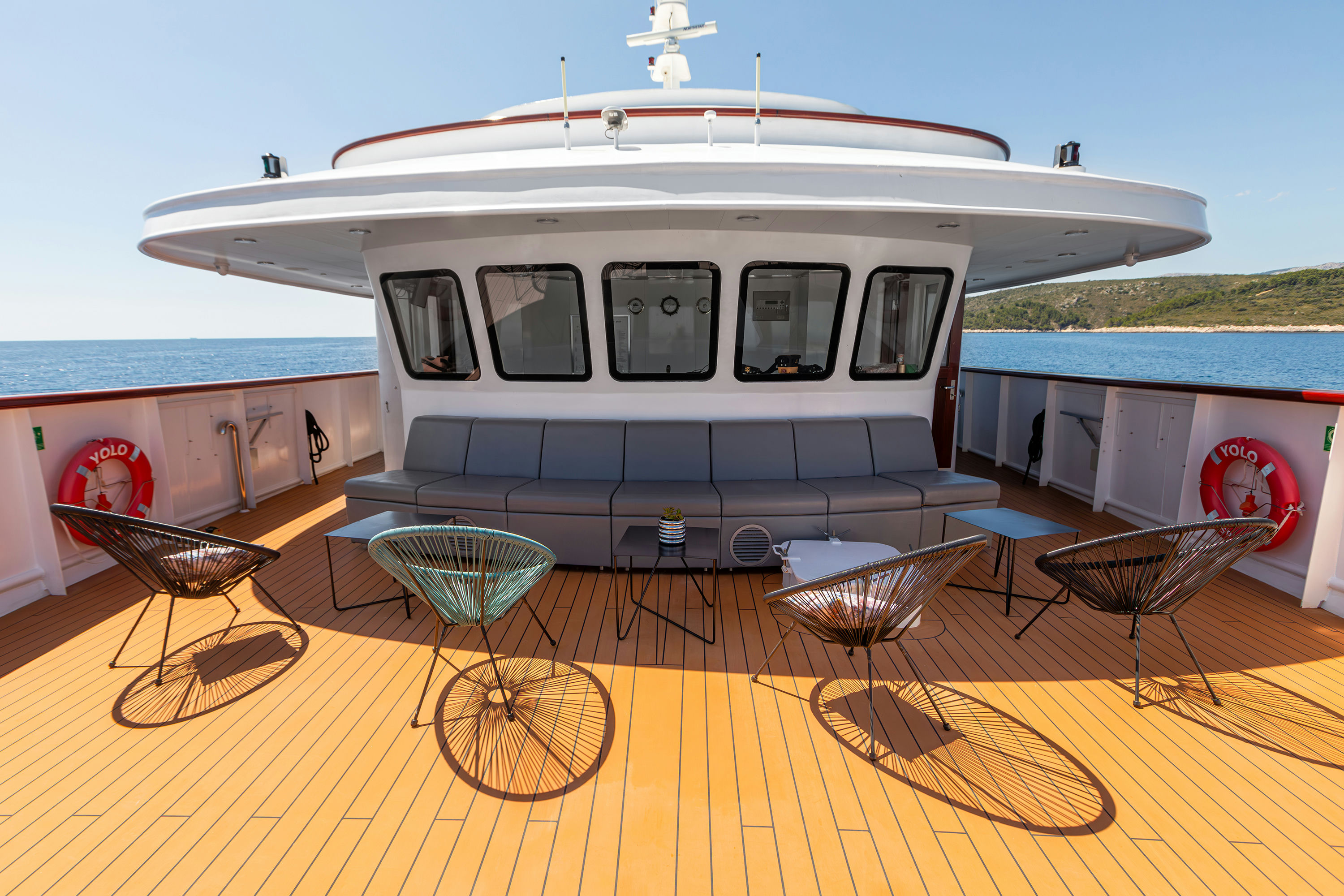 Whether anchored in a hidden cove or cruising between islands, the jacuzzi deck is your private oasis at sea.
