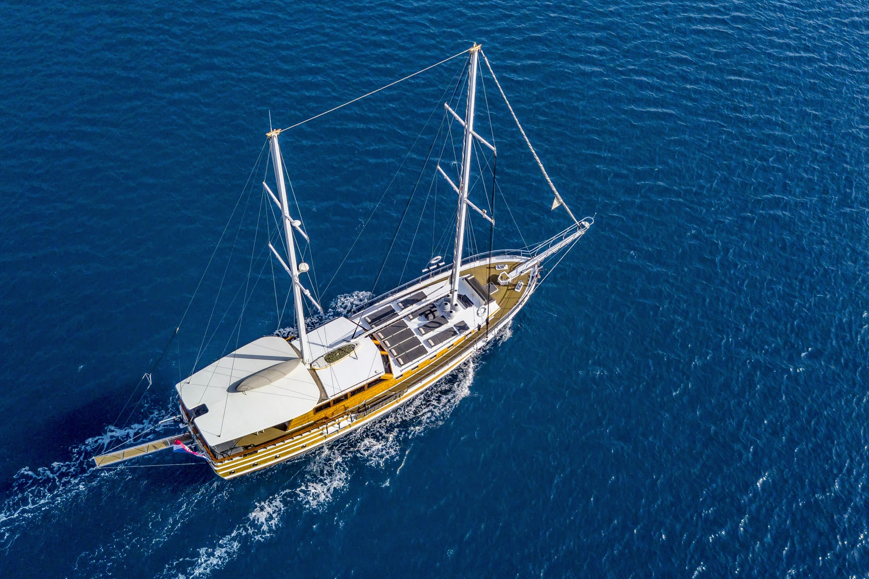 Gulets come with a full crew, which includes a captain, a chef, and one or more deckhands/hostesses, who are responsible for navigating the boat, preparing meals, and taking care of any other needs you may have. Having a full crew on board means you don't have to worry about any of the practicalities of sailing and can sit back and enjoy your vacation.